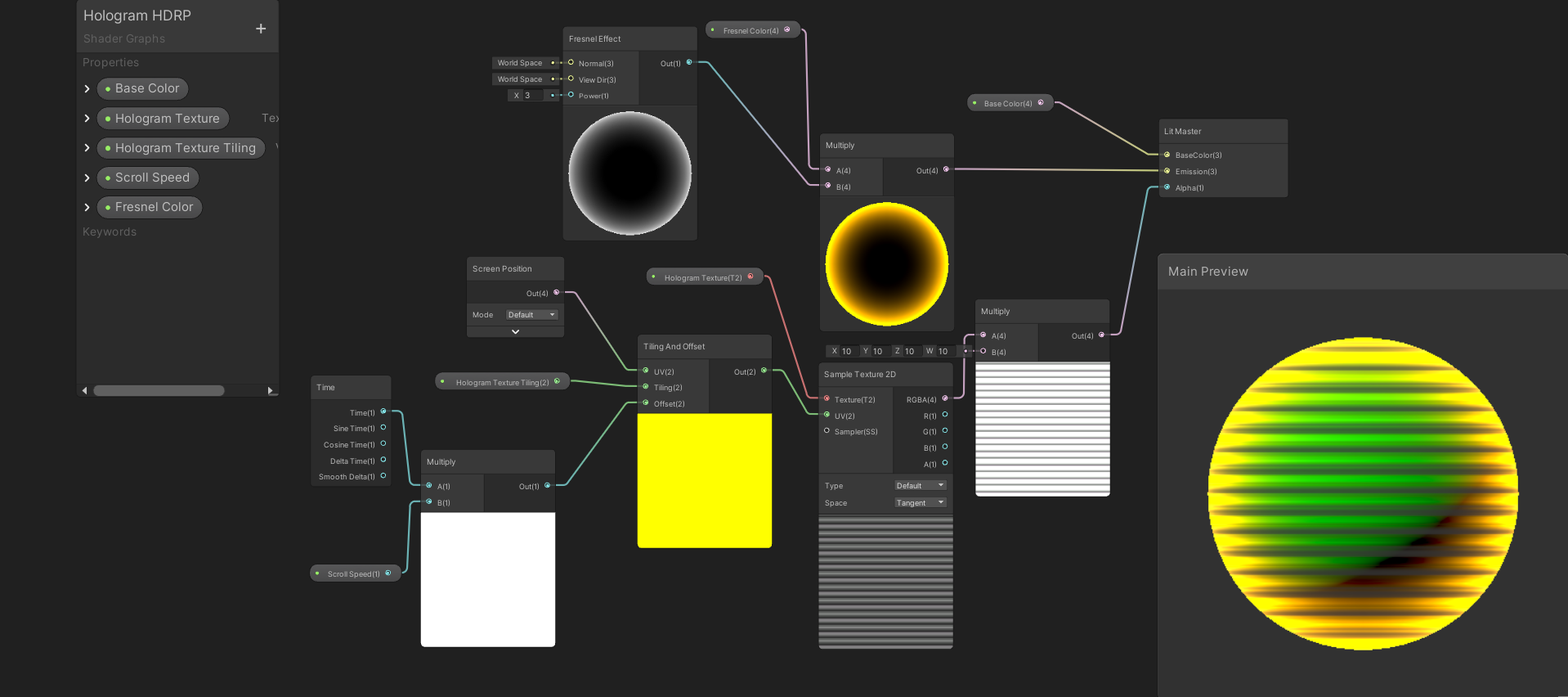 Hieronder is te zien hoe dit er in shadergraph uitziet.