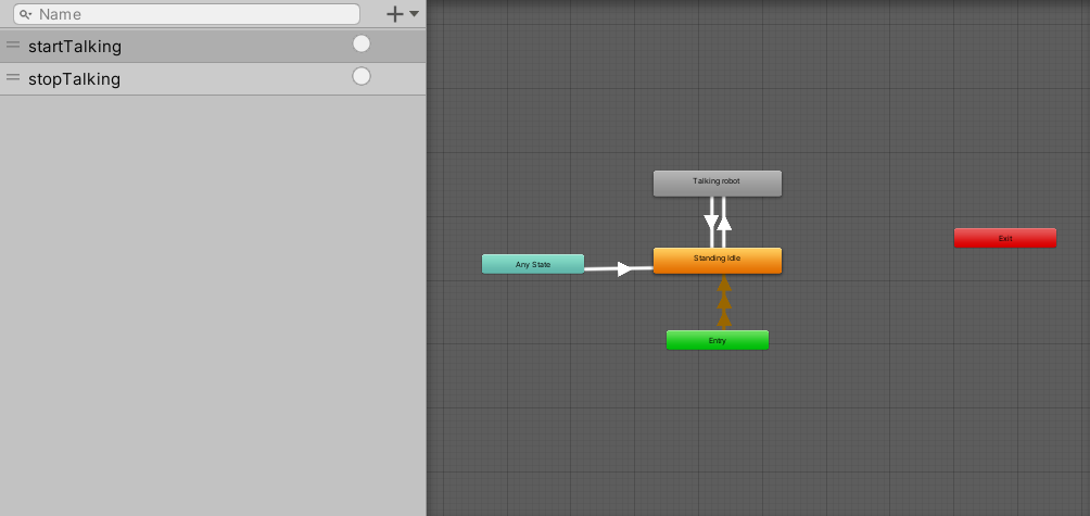 Op die manier kan ik de animatie switchen tussen het idle staan en het praten wanneer ik een conversatie start en weer klaar ben.